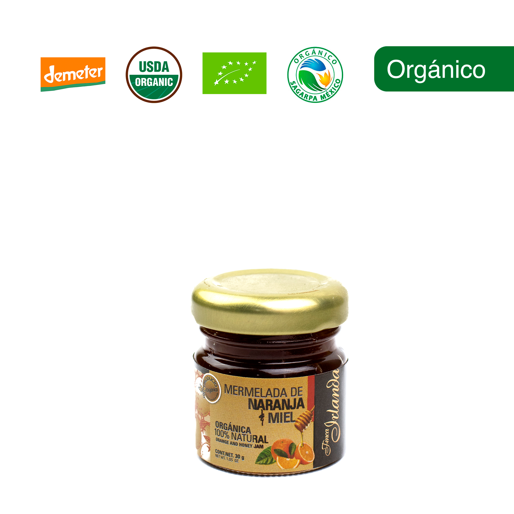 Mermelada de Naranja y Miel Orgánica Finca Irlanda 30G..